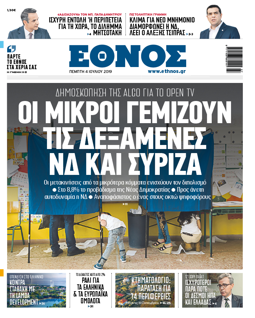 Διαβάστε στο Έθνος που κυκλοφορεί την Πέμπτη 4/7/2019