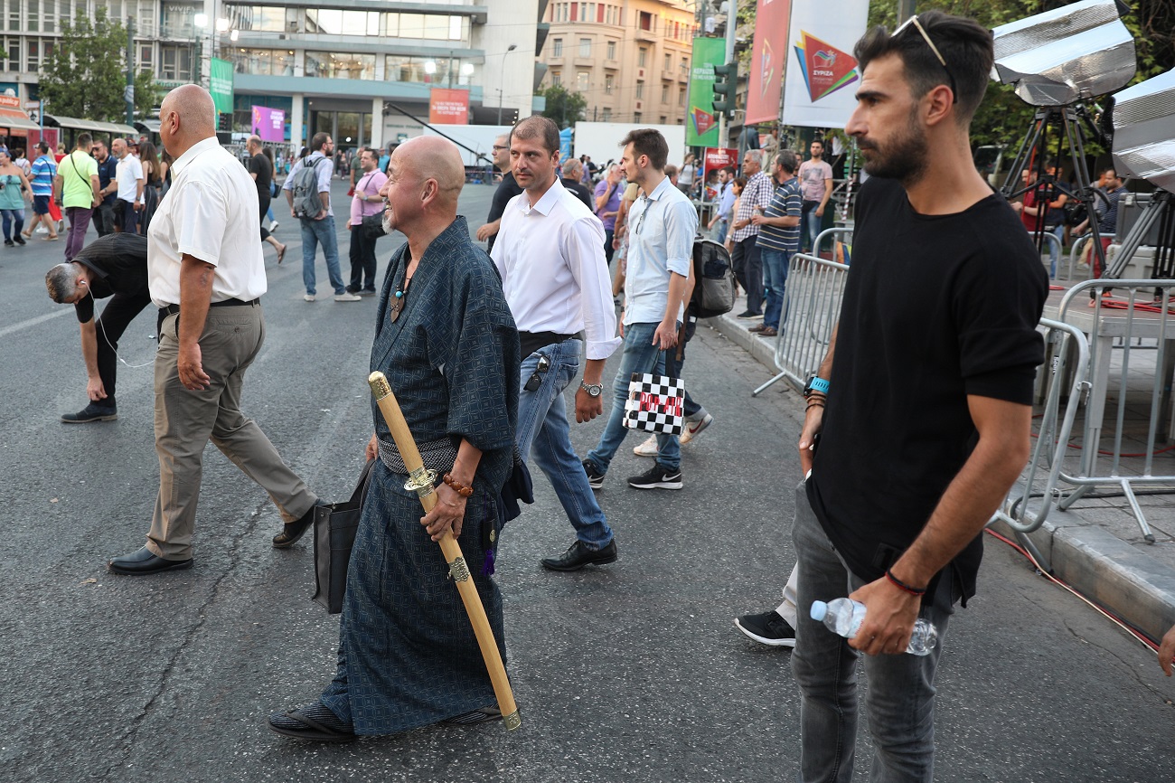 Ένας... «σαμουράι» εμφανίστηκε το απόγευμα της Παρασκευής στο Σύνταγμα, λίγο πριν από την ομιλία του Αλέξη Τσίπρα!