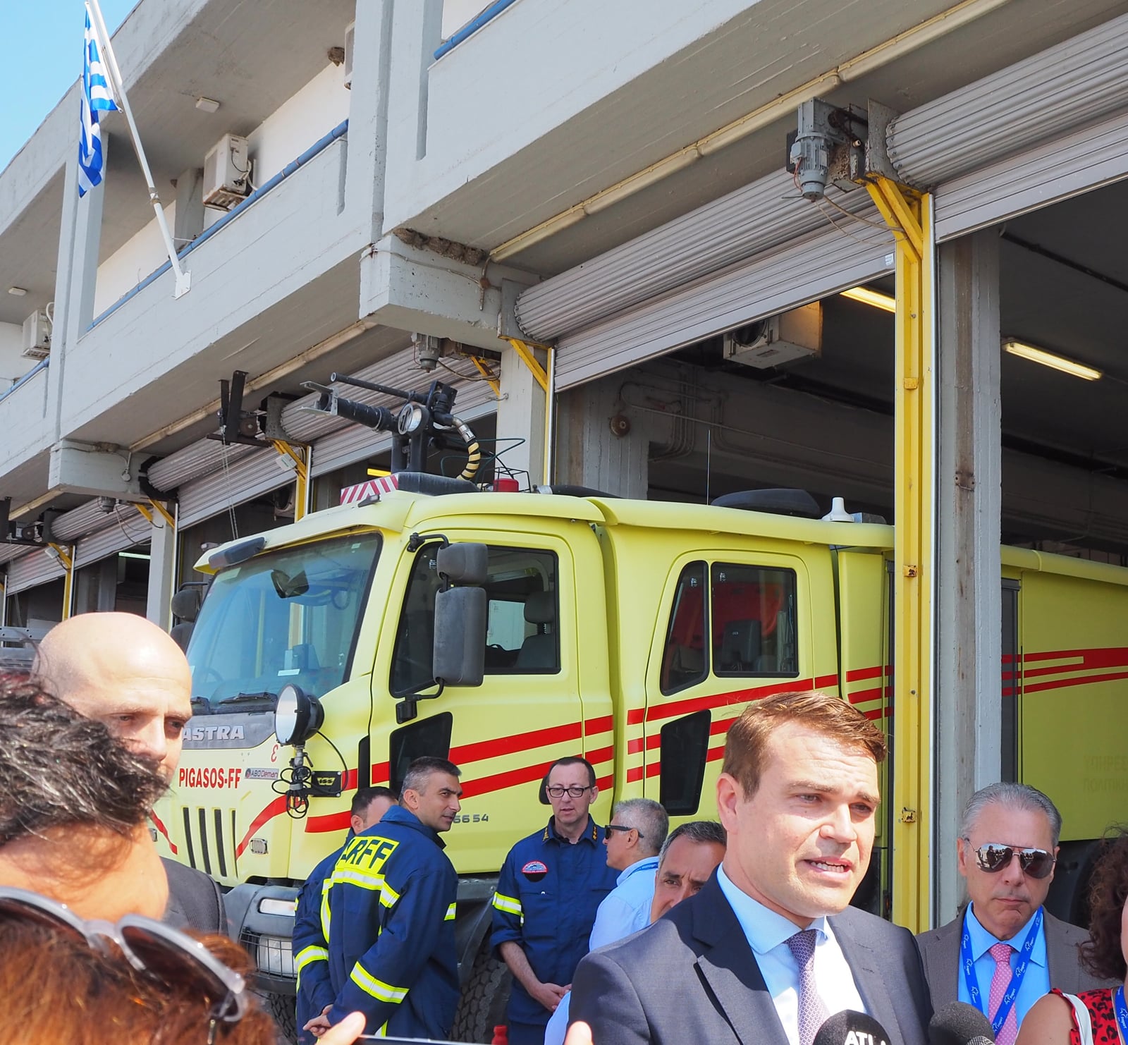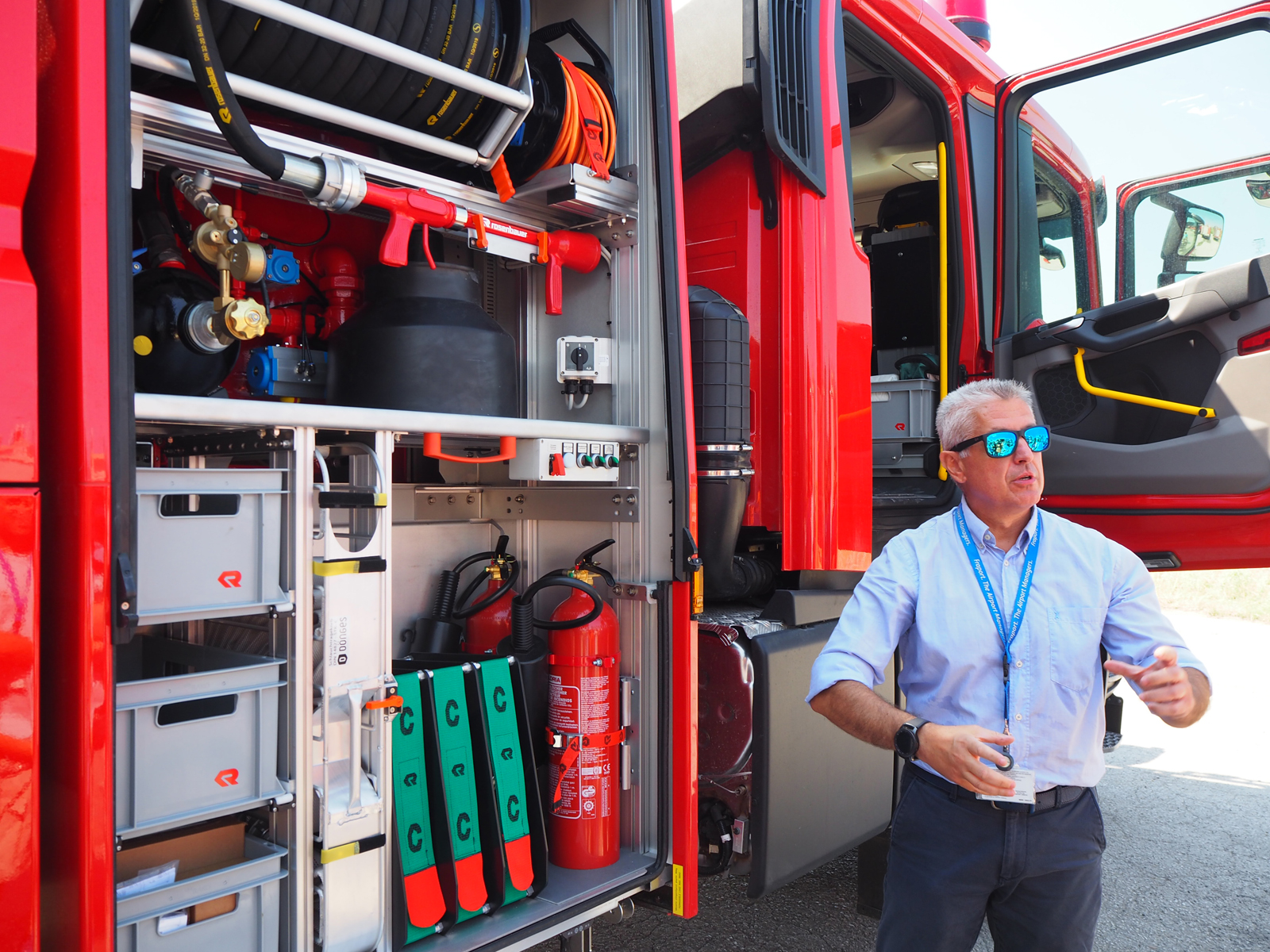 «Είμαστε εδώ για να σας παρουσιάσουμε τα καλύτερα και ολοκαίνουργια πυροσβεστικά οχήματα που έχουμε στη διάθεσή μας, αλλά που υπάρχουν και στην Ελλάδα» ανέφερε ο κ. Zinell τονίζοντας ότι «η ασφάλεια όσο και η προστασία είναι το σημαντικότερο για εμάς και για τα αεροδρόμια που διαχειριζόμαστε».