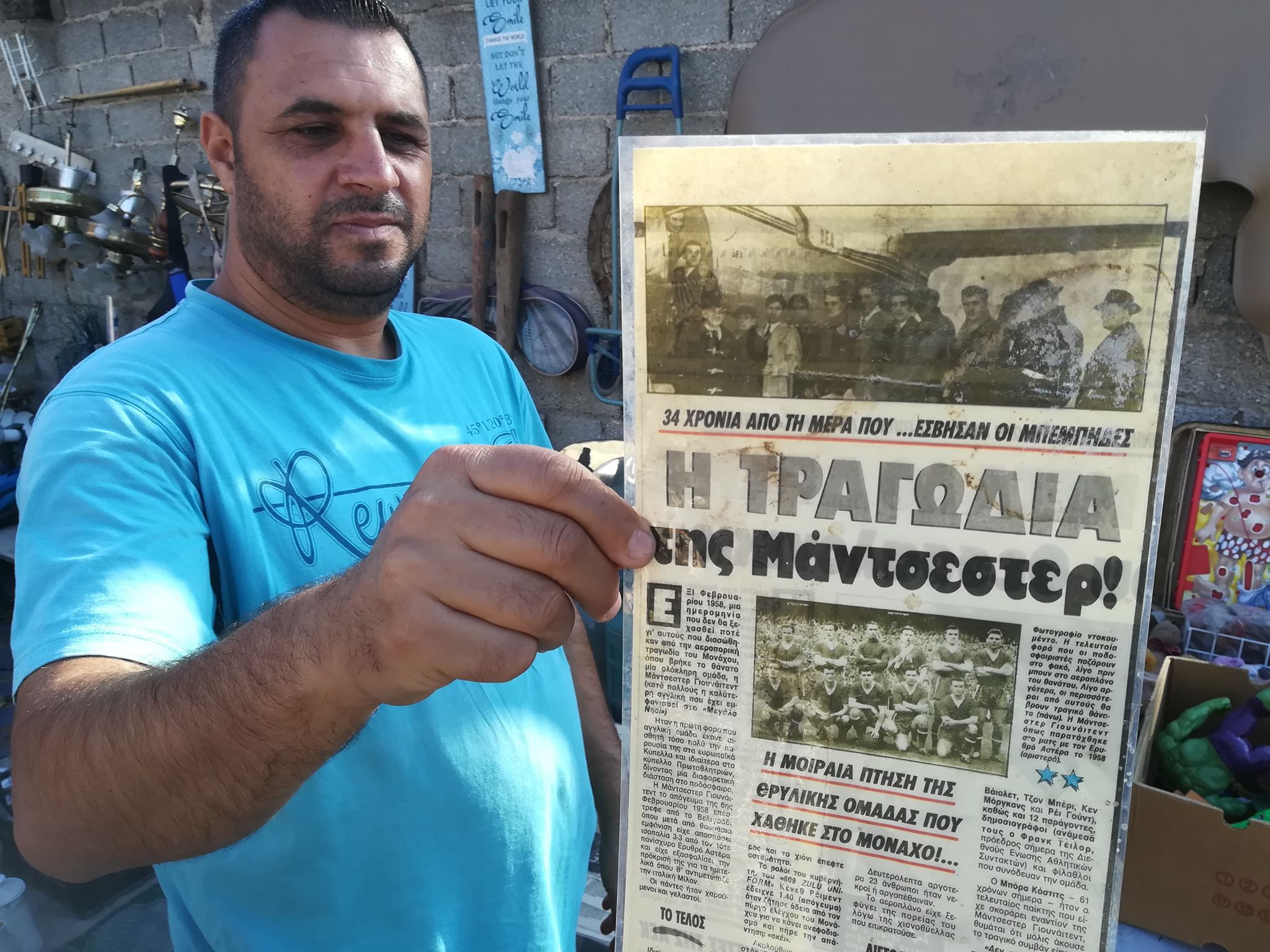 «Έκανα πολλές δουλειές σε εργοστάσια, βιοτεχνίες, ήμουν οδηγός αλλά ποτέ δεν κατάφερα να αποκτήσω μία μόνιμη δουλειά. Όταν έμεινα άνεργος είχα να θρέψω τέσσερα παιδιά. Έτσι ξεκίνησα να μαζεύω πολύτιμα αντικείμενα από τα σκουπίδια για να μπορέσω να ζήσω την οικογένεια μου. Kάθε πρωί που άνοιγα την πόρτα του σπιτιού για να βγω έξω έλεγα από μέσα “Θεέ μου βοήθησε με να βρω κάτι στα σκουπίδια για να επιβιώσουμε”», μας λέει με συγκίνηση ο Ραΐφ Χασάν. Κάθετε σε μία γωνιά, παρακολουθεί αμίλητος την κίνηση στο παζάρι ενώ πίσω του υπάρχει μία τεράστια ελληνική σημαία.