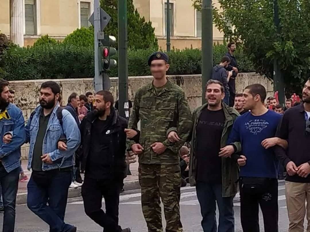 Οι διαδηλωτές συγκεντρώθηκαν αρχικά στη συμβολή των οδών Ιπποκράτους και Ακαδημίας και κατευθύνθηκαν προς το Πολυτεχνείο όπου και άνοιξαν τη σημαία φωνάζοντας «Αδέρφια ζείτε, εσείς μας οδηγείτε». Στη συνέχεια το μπλοκ με τη σημαία συγκροτήθηκε πάλι και κινήθηκε προς την αμερικάνικη πρεσβεία. Ανάμεσα στους διαδηλωτές βρισκόταν και ο εκπρόσωπος του ΚΙΝΑΛ, Παύλος Χρηστίδης.