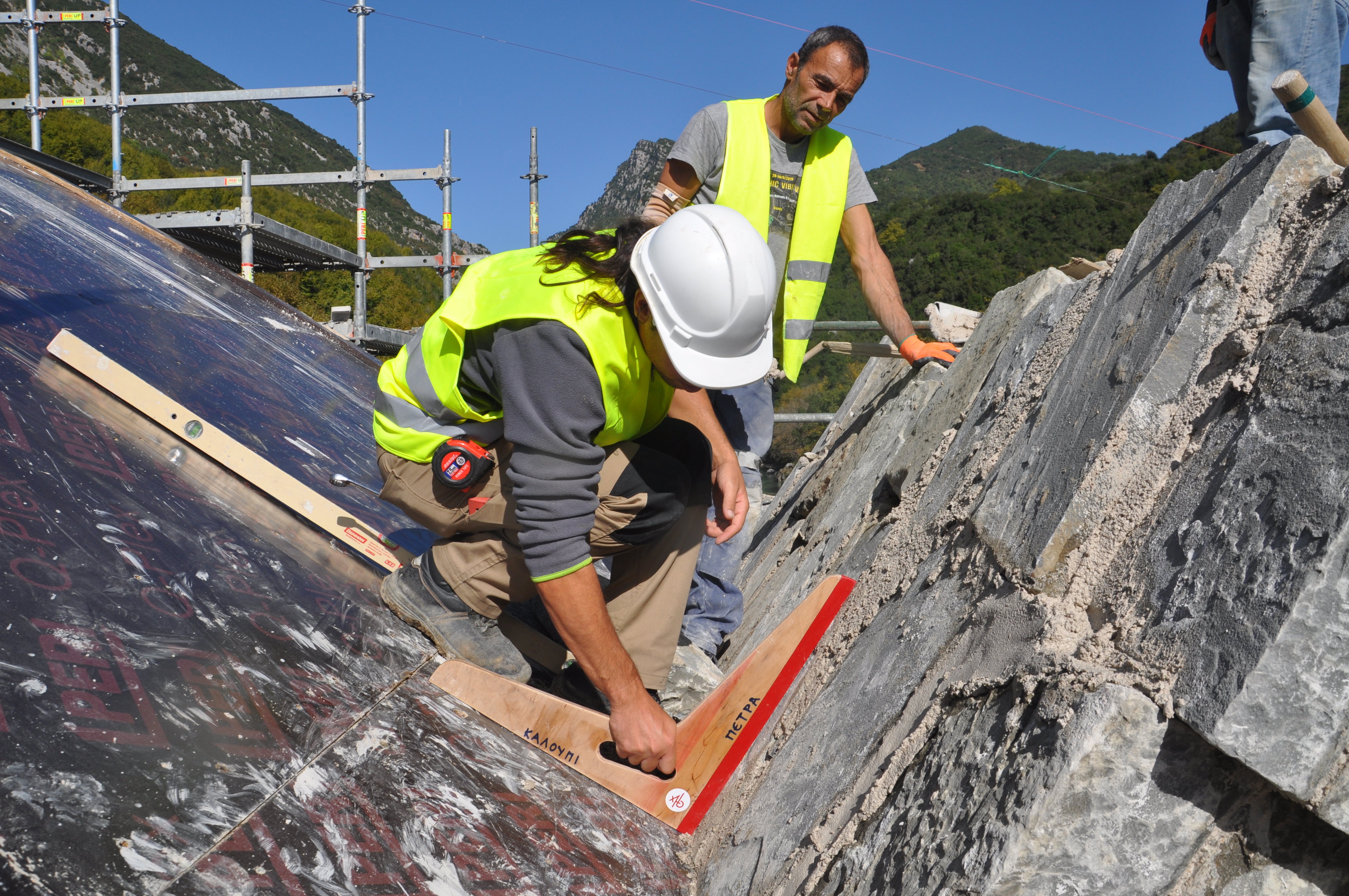 Στο πρώτο εργαστήριο δούλεψαν με καθεστώς μαθητείας 9 επαγγελματίες τεχνίτες του κλάδου της οικοδομής (6 Έλληνες και 3 από χώρες των Βαλκανίων), υπό την καθοδήγηση των έμπειρων πετράδων Δημήτρη Φώτη, Κώστα Ταρνανά και Γιώργου Αναστασιάδη. Στο τέλος της δίμηνης μαθητείας έγινε το δεύτερο, παράλληλο εντατικό εργαστήριο, για 27 άτομα διάφορων ειδικοτήτων.