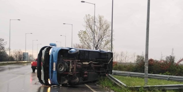 Τροχαίο ατύχημα σημειώθηκε το πρωί της Δευτέρας στον κόμβο Νισυλίου, στην έξοδο προς Εγνατία με κατεύθυνσή προς Βέροια. Όλα έγιναν περίπου στις 08.00, όταν για άγνωστη μέχρι στιγμής αιτία, μικρό τουριστικό λεωφορείο, στο οποίο επέβαινε μόνο ο οδηγός, έφυγε από το δρόμο προσέκρουσε στις μπάρες και ανετράπη.