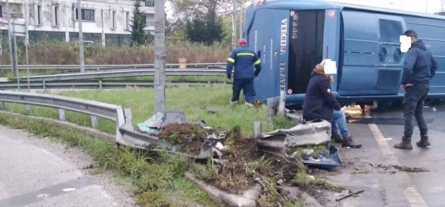Το λεωφορείο έφυγε από το δρόμο, προσέκρουσε στις μπάρες και ανετράπη-Άμεση ήταν η επέμβαση της πυροσβεστικής