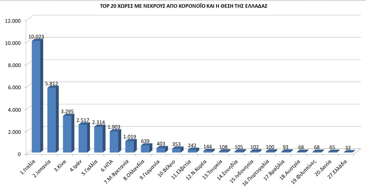 TOP 20 ΧΩΡΕΣ ΜΕ ΝΕΚΡΟΥΣ ΑΠΟ ΚΟΡΟΝΟΪΟ ΚΑΙ Η ΘΕΣΗ ΤΗΣ ΕΛΛΑΔΑΣ - ΓΡΑΦΗΜΑ 4.