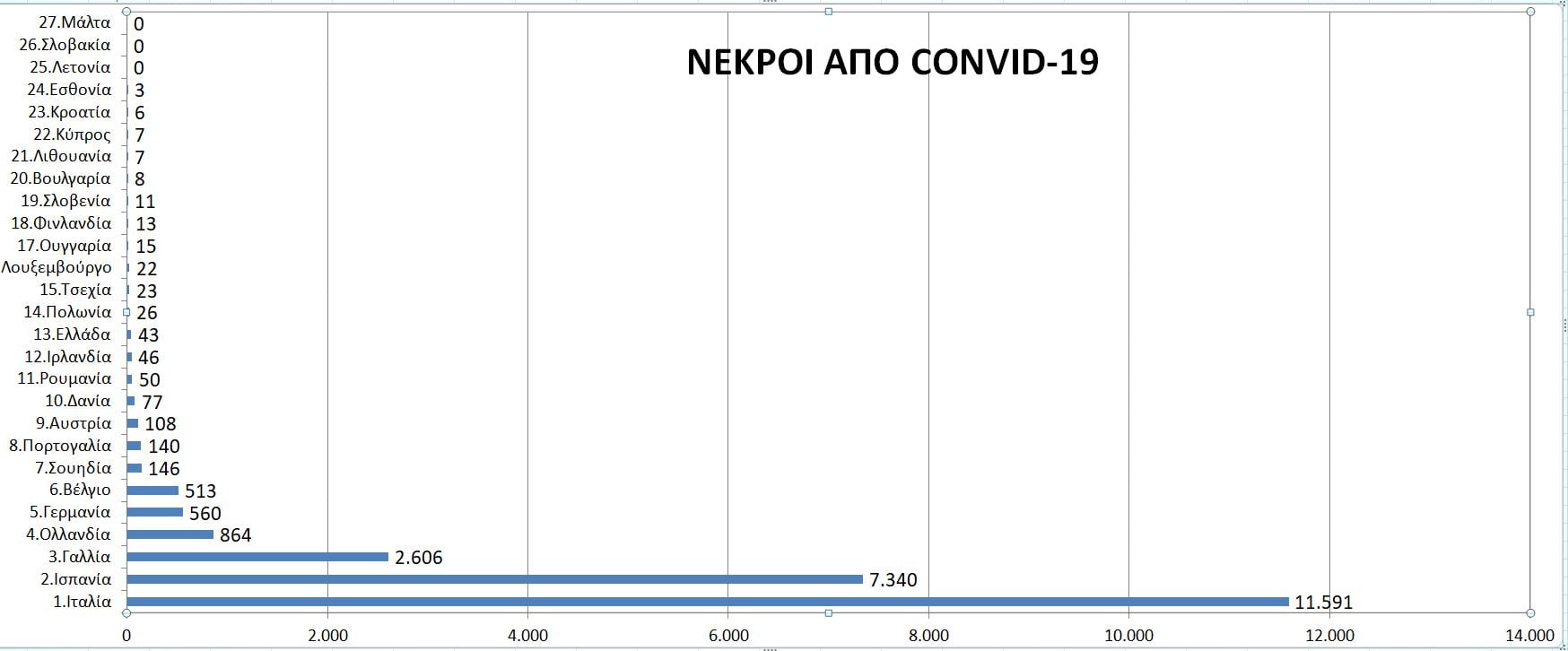 | ΧΩΡΕΣ | NEΚΡΟΙ ΑΠO CONVID-19 |