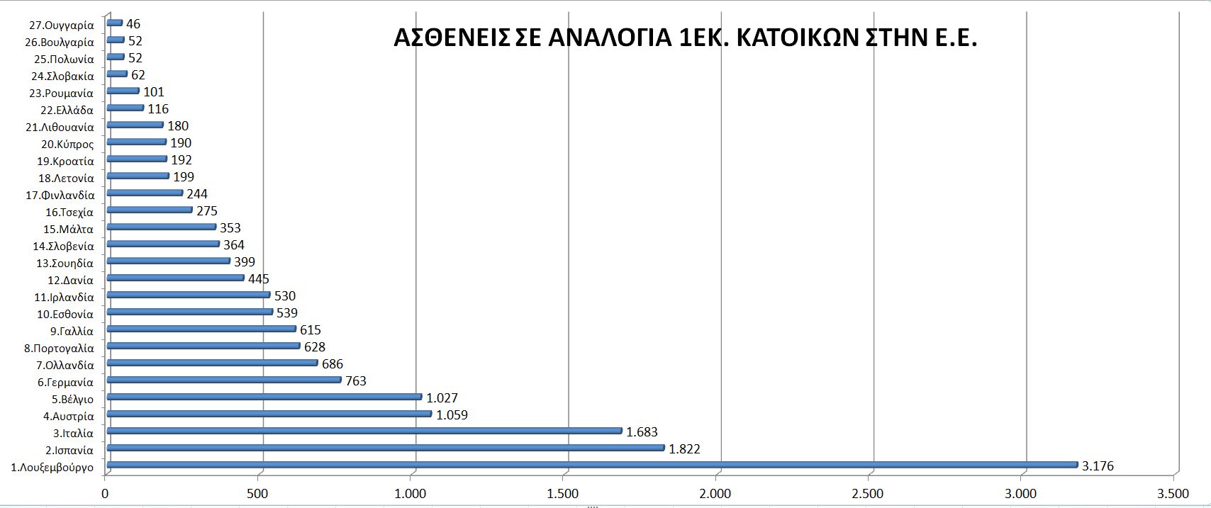 | ΧΩΡΕΣ | ΑΣΘΕΝΕΙΣ ΣΕ ΑΝΑΛΟΓΙΑ 1ΕΚ. ΚΑΤΟΙΚΩΝ |