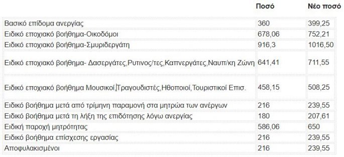 Από την 1η Φεβρουαρίου, τα επιδόματα διαμορφώνονται ως εξής: