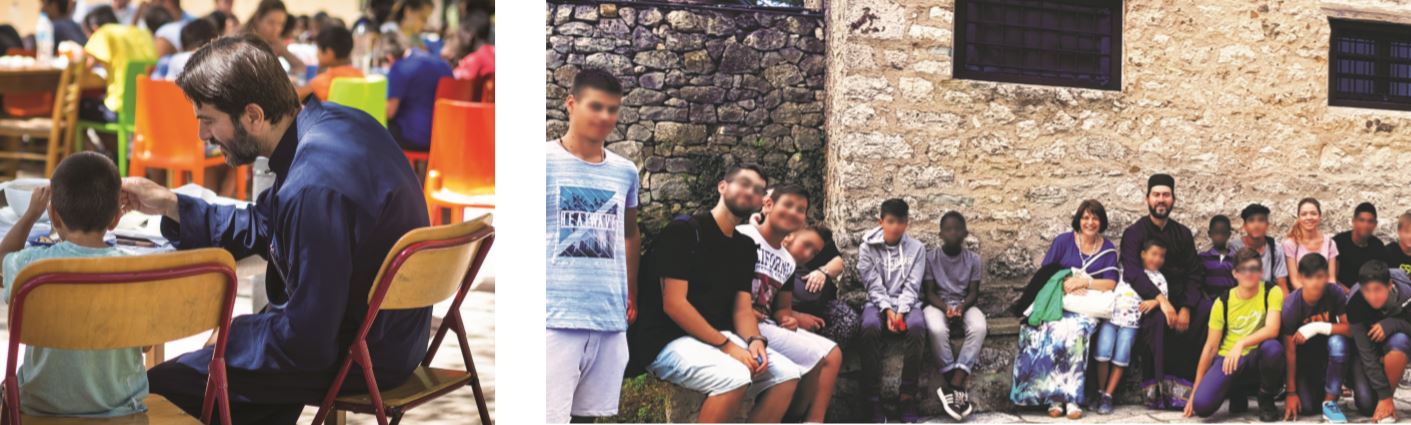 Αυτό ήταν το background της ενορίας που κλήθηκα να υπηρετήσω. Και τότε αναρωτήθηκα, μπήκα στο δίλημμα του τι να κάνω εγώ, μιας και η εκκλησία ήταν ένα «στέκι» μπροστά στην πλατεία, όπου πάρα πολλά από αυτά τα παιδιά έβρισκαν εκεί καταφύγιο για να κάνουν όλα αυτά τα πράγματα. Οπότε ήταν για μένα πολύ μεγάλη πρόκληση, ως νέος κληρικός τότε, το να μπορώ να βγω έξω από την εκκλησία και να «κάνω τη θεία λειτουργία» εκεί απ’ έξω. Στις καρδιές αυτών των παιδιών, που είναι η πιο ιερή τράπεζα, και να μπορέσω εν συνεχεία να προβληματίσω αυτά τα παιδιά. Έτσι σιγά σιγά δημιουργήσαμε ομάδες μπάσκετ και τα έβαλα σε πρωτάθλημα και καταφέραμε να έχουμε πολύ μεγάλη επιτυχία. Σιγά σιγά καταφέραμε να μπουν και στο σχολείο και δημιουργήσαμε και ένα εστιατόριο για να μπορούν να τρώνε το μεσημεριανό τους, δηλαδή δημιουργήσαμε ένα σπίτι έξω από το σπίτι που δεν είχαν. Δεν είχαν δηλαδή το σπιτικό τους επιστρέφοντας από το σχολείο να φάνε ένα σπιτικό φαγητό, μιας και στην πραγματικότητα ο γονιός ήταν απών – και όχι μόνο απών αλλά πολλές φορές και πρόβλημα για το ίδιο το παιδί. Υπήρχαν περιπτώσεις που το βράδυ το ίδιο το παιδί έπρεπε να βγει έξω και να ψάξει τον πατέρα του. Όλα αυτά τα μοιραστήκαμε, κι αυτό έγινε σταδιακά. Ξέρετε, για μένα η πιο σημαντική μορφή επικοινωνίας είναι να μπορέσει ο άλλος να μοιραστεί την κατάντια του μαζί σου.