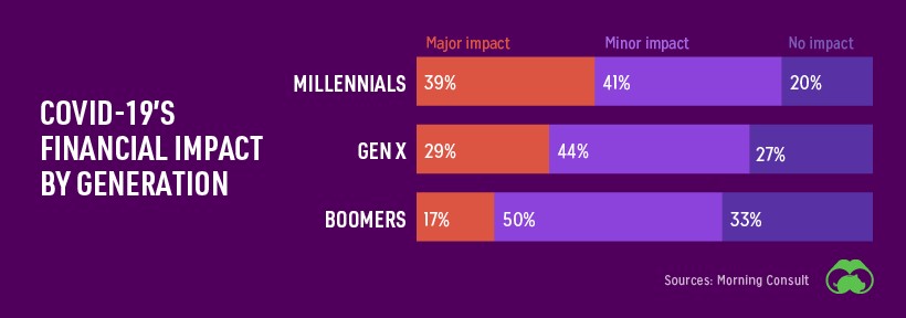 Τέλος η Covid-19 επηρέασε περισσότερο τις νέες γενιές. Πιο συγκεκριμένα το 39% των πολιτών που έχουν γεννηθεί την περίοδο μεταξύ 1981 και 1996 (οι γνωστοί Millennials) έχουν δεχθεί μια ιδιαίτερα σημαντική αρνητική επίδραση στα χρηματοοικονομικά τους.