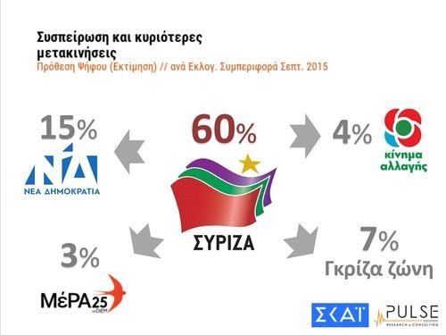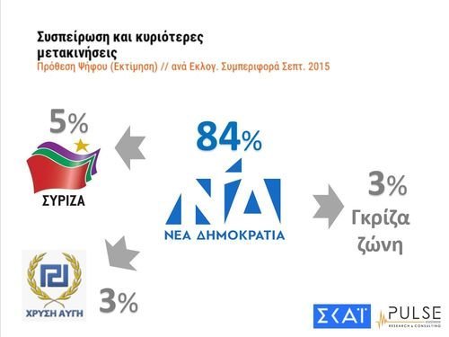 Παράλληλα ο Αλέξης Τσίπρας συσπειρώνει τις δυνάμεις του αλλά το ισοζύγιο παραμένει αρνητικό (84% έναντι 60%) αλλά και στις τις μετακινήσεις ψηφοφόρων του ΣΥΡΙΖΑ προς τη ΝΔ, οι οποίες παραμένουν διψήφιες (15%).