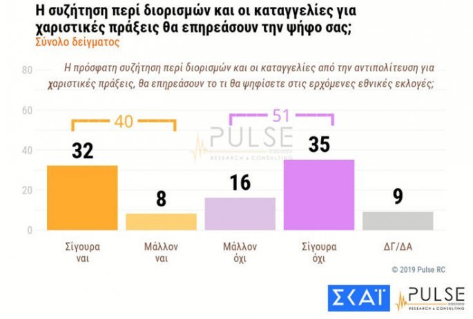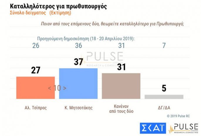 Τη δημοσκόπηση διενήργησε η εταιρεία Pulse RC για λογαριασμό του ΣΚΑΪ.