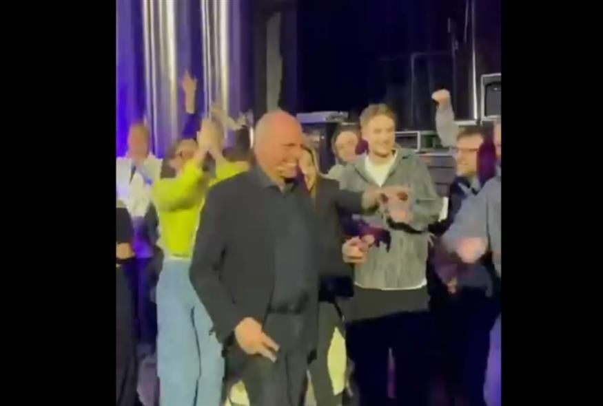 Κάνοντας ένα διάλειμμα από τις υποχρεώσεις του, ο γραμματέας του ΜέΡΑ25 χόρεψε με νεαρούς παρευρισκόμενους, δείχνοντας να απολαμβάνει τη στιγμή -και το κομμάτι που φέρει το όνομά του!