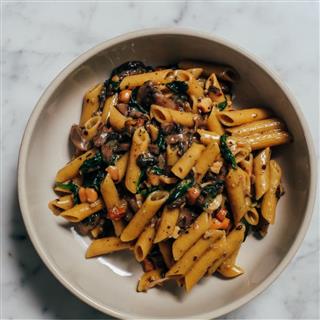 Πράσινη κουζίνα - Ζυμαρικά με μανιτάρια, σπανάκι και φιστίκια