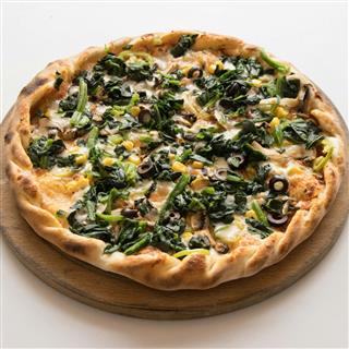 Vegetarian και σπιτική - Πίτσα με σπανάκι, καλαμπόκι και τυριά