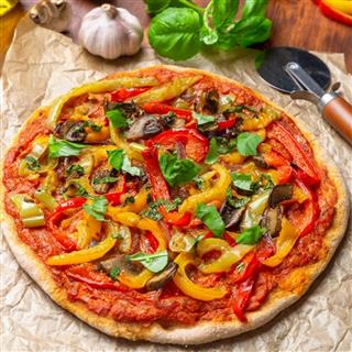 Vegan λιχουδιά - Σούπερ υγιεινή πίτσα με λαχανικά, βασιλικό και νιφάδες βρώμης