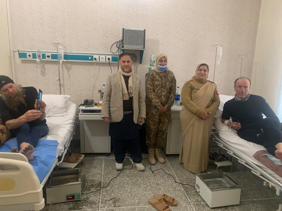 Ο Αντώνης Συκάρης με κρυοπαγήματα νοσηλεύτηκε σε στρατιωτικό νοσοκομείο της πόλης Σκαρντού του Πακιστάν και σε υψόμετρο 2.500 μέτρων, ενώ από την Δευτέρα μεταφέρθηκε στο Ισλαμαμπάντ όπου μάλιστα μετείχε και σε πτήση αναζήτησης των τριών συντρόφων του με ειδικό στρατιωτικό ελικόπτερο: «Ο πρόεδρος και ο πρωθυπουργός του Πακιστάν έχουν δώσει εντολή στο στρατό να μη σταματήσουν τις έρευνες εάν θα δεν τους βρουν. Ο Αλί Σαντπάρα ήταν ένας θρύλος και το εγχείρημα του το παρακολουθούσε όλο το Πακιστάν. Είναι πρώτο θέμα στις ειδήσεις εδώ. Πέταξα με ελικόπτερο στα 7.500 μέτρα και όπως μου είπε ο πιλότος είναι η πρώτη φορά που ένα ελικόπτερο ανεβαίνει τόσο ψηλά και τόσο κοντά στο Κ2.