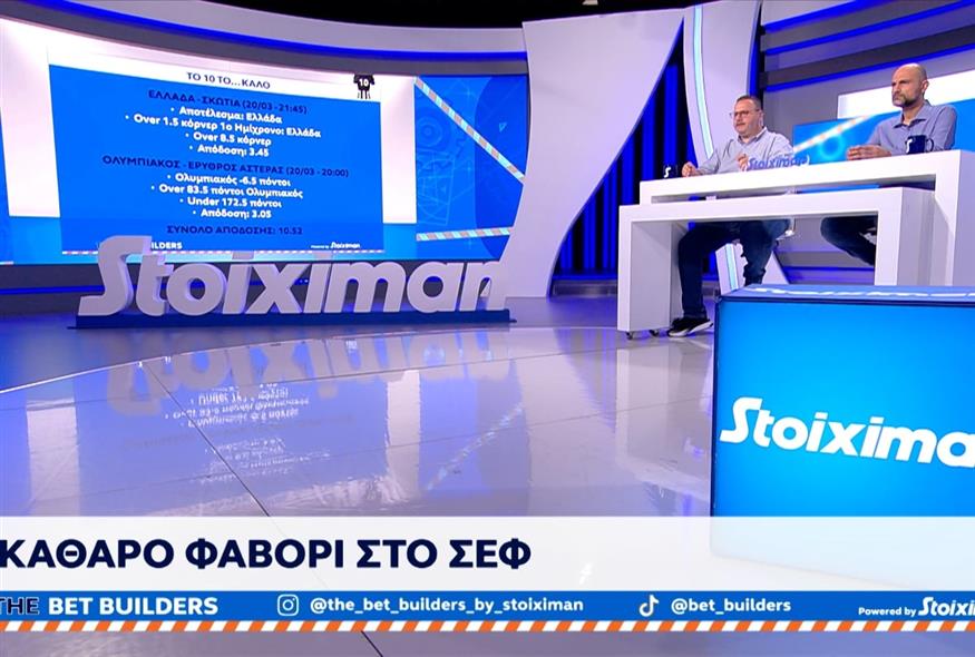Οι THE BET BUILDERS powered by Stoiximan έκαναν πάταγο, κάνοντας θραύση με τις εύστοχες επιλογές τους. Οι Κώστας Μανωλιουδάκης και Σταύρος Καζαντζόγλου έδωσαν ρεσιτάλ με εύστοχες αναλύσεις και απόλυτα επιτυχημένες προβλέψεις, που μοίρασαν χαμόγελα και μπόλικο χρήμα! Με νέο εντυπωσιακό 6 στα 7, έχοντας σχεδόν απόλυτη επιτυχία στις βασικές επιλογές και την πρόταση του σκηνοθέτη να δίνει τριπλασιασμό, οι THE BET BUILDERS powered by Stoiximan έκαναν ξανά τη διαφορά.