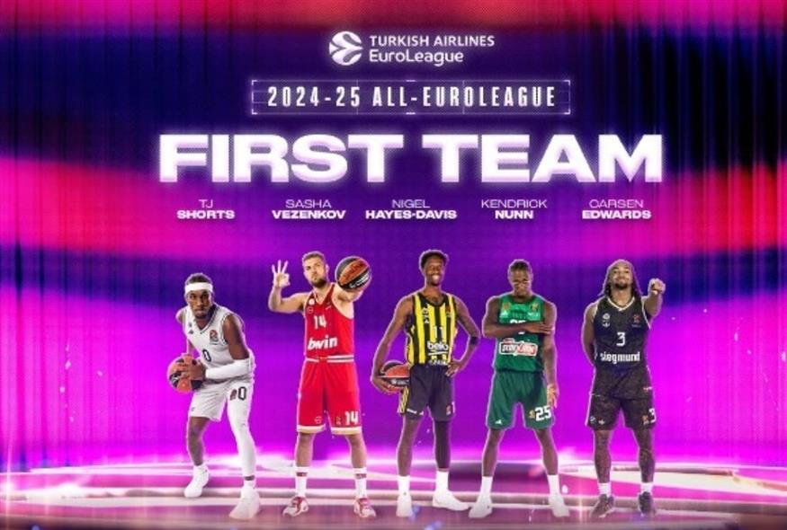 Mε τους Κέντρικ Ναν και Σάσα Βεζένκοφ -όπως αναμενόταν- ανακοινώθηκε απ' την Euroleague η κορυφαία πεντάδα All-EuroLeague 2024-25.