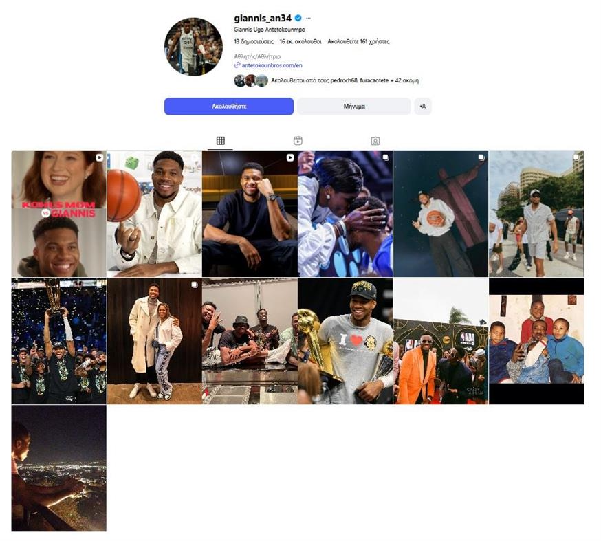 Το προφίλ του Γιάννη Αντετοκούνμπο στο Instagram