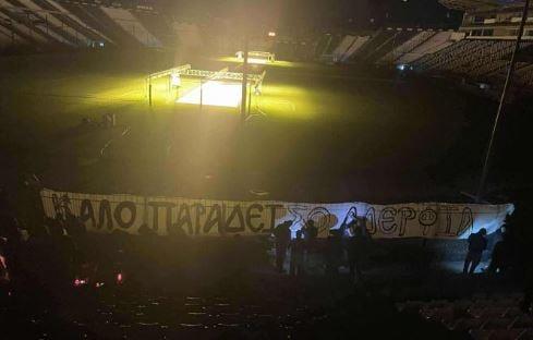 Λίγο αργότερα, οι φίλοι του ΠΑΟΚ μπήκαν στο γήπεδο και κατευθύνθηκαν με φαναράκια στη Θύρα 4, εκεί όπου τοποθετήθηκε ένα πανό: «Καλό παράδεισο, αδέρφια».