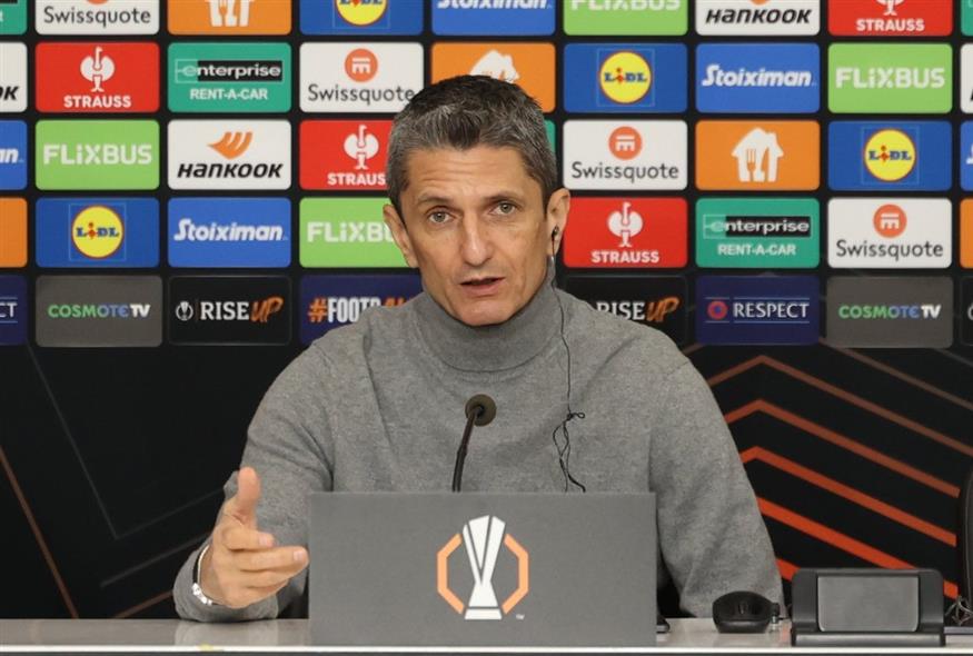Για την απουσία του από τον πάγκο στον αγώνα και το αν η περσινή εμπειρία της απουσίας τον οδηγεί να αλλάξει κάτι: «Δεν ξέρω τι να απαντήσω σε αυτό. Η ιστορία των αγώνων που δεν ήμουν στον πάγκο, έδειξε ότι δεν το διαχειριστήκαμε καλά. Αυτό ήταν πέρσι, φέτος είναι διαφορετικό. Αποδέχομαι την τιμωρία μου και εκείνη την ώρα αντέδρασα έντονα για την αδικία από τον διαιτητή. Πρέπει να προετοιμαστούμε και δεν έχει να κάνει με το αν είμαι στον πάγκο ή όχι».