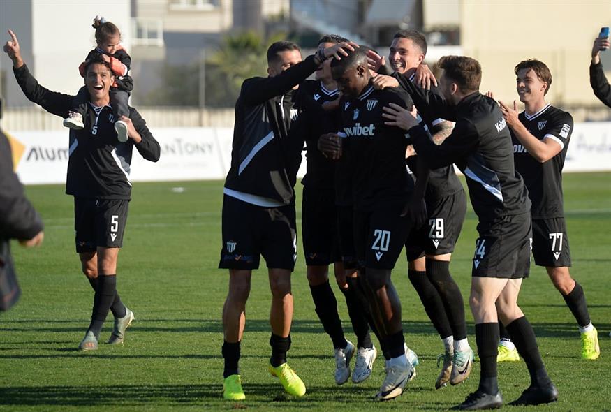 Στο άλλο ματς, οι Ερυθρόλευκοι προηγήθηκαν με το σουτ του Κουτσίδη (17΄) και την κεφαλιά του Τανούλη (41΄), ωστόσο οι φιλοξενούμενοι είχαν σημαντικές ευκαιρίες να επιστρέψουν. Ο Παπαγεωργίου σημάδεψε το οριζόντιο δοκάρι σε εκτέλεση πέναλτι που θα μπορούσε να φέρει το 1-1, ενώ δοκάρι είχε και ο Γένσεν, με τον Μπελμόντ (61΄) να μειώνει στη συνέχεια στην ίδια φάση.
