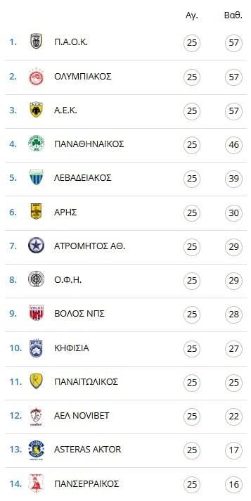 Στην κορυφή, ΠΑΟΚ, Ολυμπιακός και ΑΕΚ βρίσκονται σε οριακή ισορροπία, με τα σενάρια να είναι πολλαπλά. Ο ΠΑΟΚ έχει την ευκαιρία να «κλειδώσει» την πρώτη θέση (έχοντας το πλεονέκτημα στην τριπλή ισοβαθμία) με νίκη στον Βόλο, η ΑΕΚ θέλει τρίποντο απέναντι στην Κηφισιά και ταυτόχρονα απώλειες των αντιπάλων της, ενώ ο Ολυμπιακός χρειάζεται συνδυασμό αποτελεσμάτων για να προσπεράσει, εφόσον βεβαίως επικρατήσει της ΑΕΛ. Στο τέλος της ημέρας πάντως, αν επικρατήσουν τα φαβορί, οι τρεις τους θα μπουν ισόβαθμοι στα πλέι οφ.