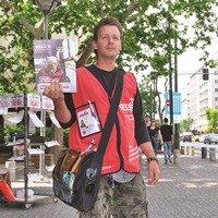 »Παράλληλα, έγινα ένας από τους οδηγούς των «Αόρατων Διαδρομών», μια δράση που με βοήθησε να ξετυλίξω ένα κομμάτι της ψυχής μου και να το μοιραστώ με τον κόσμο, ανταποδίδοντας την αγάπη που εισπράττω πουλώντας το περιοδικό. Αναζητώ μια σταθερή εργασία, αλλά δεν πρόκειται να φύγω από τη «σχεδία». Ακόμα και τις περιόδους που βρίσκω μια δουλειά, εξακολουθώ να προσφέρω εθελοντική εργασία για να βοηθήσω τους συναδέλφους μου όπου μπορώ. Αυτό θα συνεχίσει να γίνεται ακόμα κι αν βρω μόνιμη δουλειά. Θα ήθελα να βρω μια δουλειά που να είμαι σε συνεχή επικοινωνία με κόσμο, να μιλάμε, να ανταλλάσσουμε σκέψεις και χαμόγελα. Πάντα μου άρεσε αυτή τη σχέση με τους ανθρώπους. Πολλοί λένε ότι είμαι ρομαντικός, αλλά εγώ επιμένω να λέω ότι εξακολουθώ να πιστεύω στους ανθρώπους. Υπάρχει αγάπη και αλληλεγγύη, την έχω βιώσει και είμαι σίγουρος ότι όλοι μαζί με κοινή προσπάθεια, κάποια στιγμή θα φτάσουμε κάπου καλά».