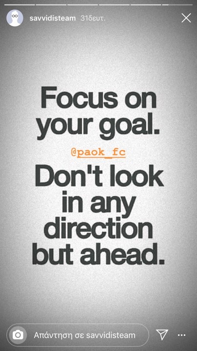 Πριν την σύσκεψη με επικεφαλής τον Υφυπουργό αθλητισμού Λευτέρη Αυγενάκη, ο Γιώργης Σαββίδης είχε προχωρήσει στη πρώτη ανάρτηση, στην οποία σημείωσε πως όλη η προσοχή θα πρέπει να είναι στραμμένη στους στόχους της ομάδας, και στη προκειμένου περίπτωση τη προετοιμασία για την αναμέτρηση με τον Αρη. «Επικεντρώσου στο στόχο σου. Μη κοιτάζεις σε άλλη κατεύθυνση παρά μόνο μπροστά» ανέφερε χαρακτηριστικά.