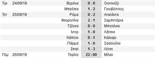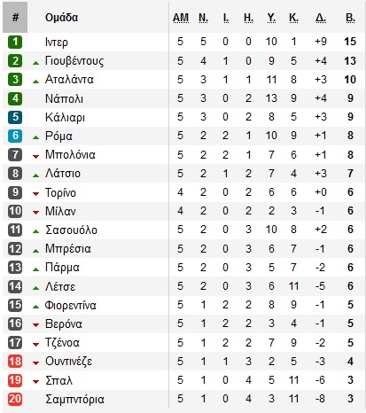 Στη Serie A, η Γιουβέντους παρέμεινε για σχεδόν ένα 24ωρο την επιστροφή της στη κορυφή, καθώς η Ιντερ επέστρεψε σε αυτή με τη νέα της νίκη, αυτή τη φορά απέναντι στη Λάτσιο και συνεχίζει να έχει το απόλυτο από το ξεκίνημα της σεζόν.
