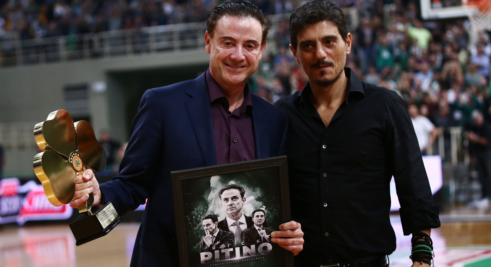 To OAKA σηκώθηκε στο πόδι για να αποθεώσει τον Ρίκ Πιτίνο, που βραβεύτηκε από τον Δημήτρη Γιαννακόπουλο στο ημίχρονο του αγώνα του Παναθηναϊκού με τη Βαλένθια για την 7η αγωνιστική της κανονικής περιόδου της Euroleague 2019/20.
