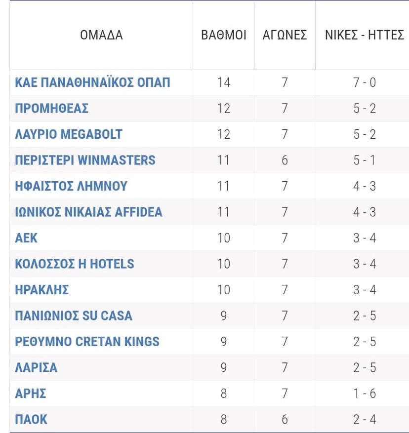 Ξεχώρισαν στην 7η αγωνιστική οι νίκες του Ρεθύμνου επί του Προμηθέα, της Λάρισας επί του Κολοσσού και του Λαυρίου επί του Πανιώνιου-Τα αποτελέσματα🕛 χρόνος ανάγνωσης: 3 λεπτά ┋