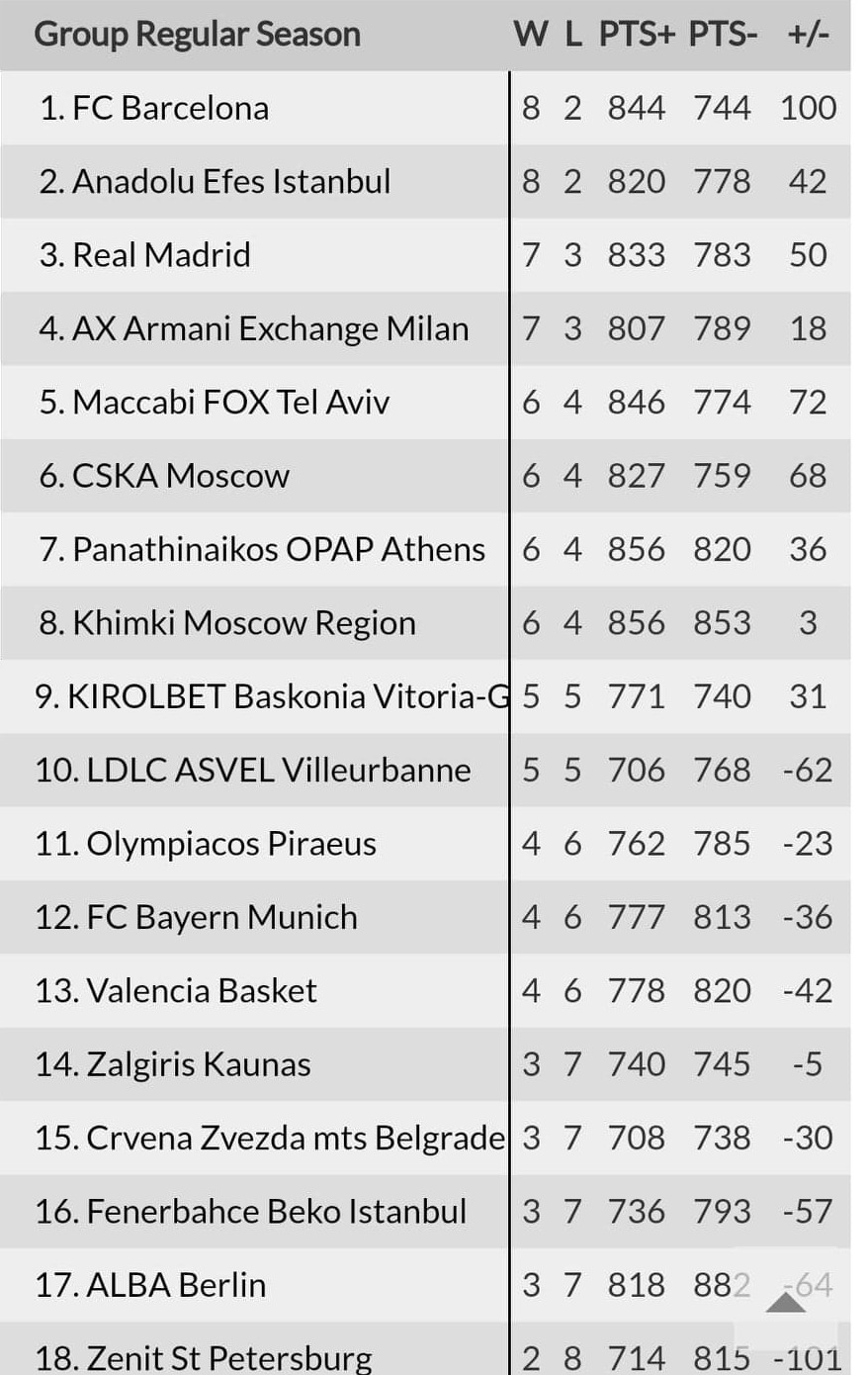 Euroleague: Μεγάλες νίκες για Ρεάλ και Μπαρτσελόνα-Τα αποτελέσματα &βαθμολογία