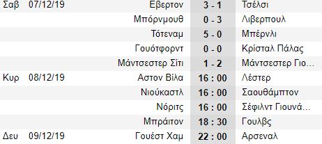 Εντυπωσιακή ήταν και η Τότεναμ του Μουρίνιο που επικράτησε 5-0 της Μπέρνλι με γκολ του Κέιν στο 4' και στο 54', του Λούκας στο 9', του Σον στο 32' και του Σισοκό στο 74'.