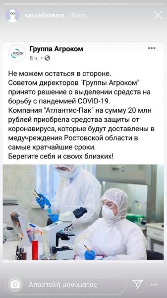 Μεγάλη προσφορά του Ιβάν Σαββίδη στη μάχη κατά του κορονοϊού και στη Ρωσία