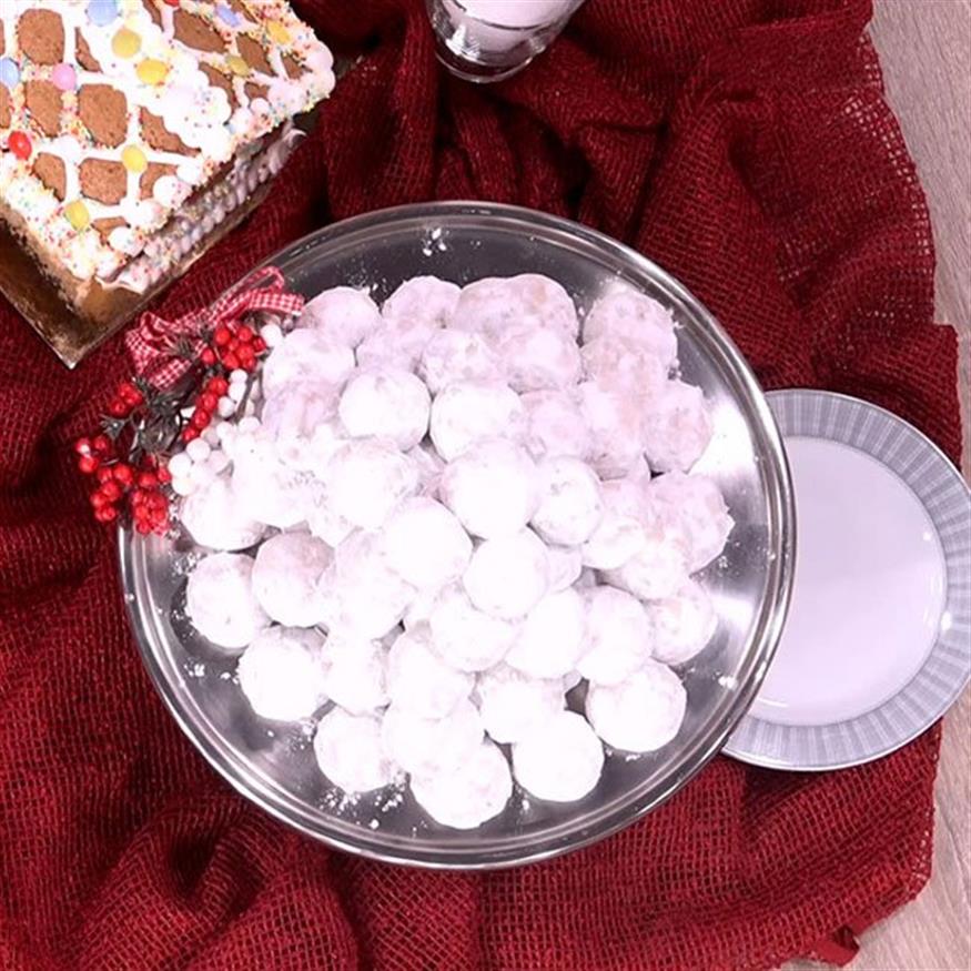 Στη συνέχεια βάζουμε και τα καβουρδισμένα αμύγδαλα και πλάθουμε τους κουραμπιέδες στο μέγεθος που τους προτιμάμε χωρίς να τους δουλέψουμε ιδιαίτερα γιατί θα σκληρύνουν. Το ψήσιμο παίρνει 20 λεπτά το πολύ. Μετά μένει να τους περάσουμε με ένα πινελάκι με ροδόνερο και μόλις κρυώσουν καλά, να τους πασπαλίσουμε με μπόλικη άχνη ζάχαρη μέχρι να καλυφθούν καλά. Χιονάτοι, μυρωδάτοι, είναι ακαταμάχητοι.