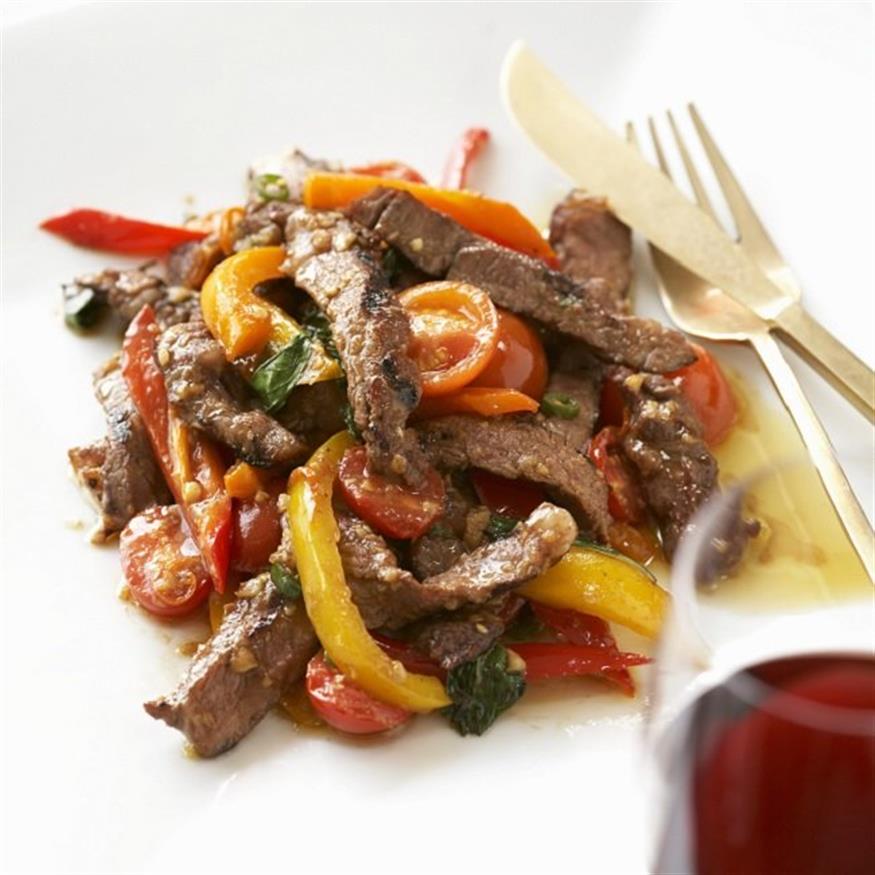 Εξωτικό μοσχαράκι με πιπεριές, ντοματίνια και τζίντζερ