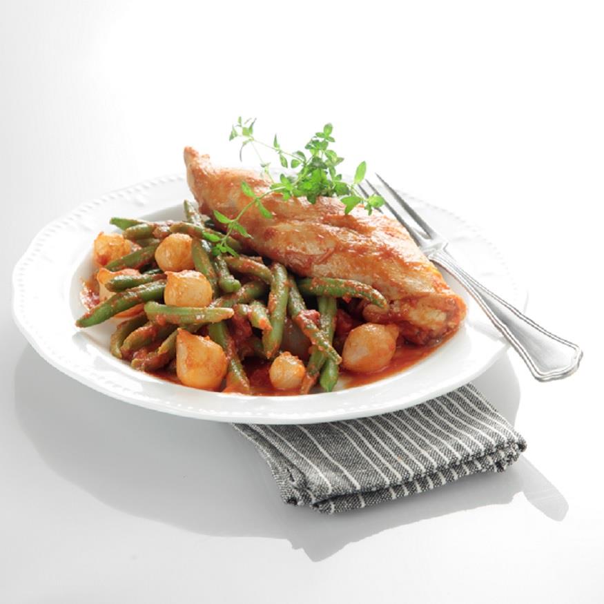 Κουνέλι με φασολάκια σε σάλτσα ντομάτας