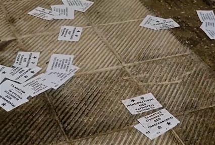 Στο σημείο υπήρχε και ένα αναποδογυρισμένο αυτοκίνητο, ενώ με σπρέι η ομάδα αγνώστων έγραψε «τα κρατικά εγκλήματα δεν παραγράφονται»