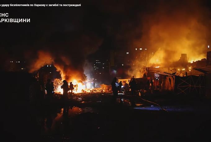 Στη συνοικία Ντνιπρόφσκι ξέσπασε φωτιά σε πολυκατοικία από τους βομβαρδισμούς