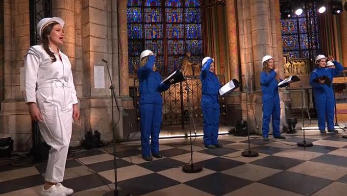 Γαλλία: «Τρίγωνα κάλαντα» με προστατευτικές φόρμες και καπέλα στην Παναγία των Παρισίων