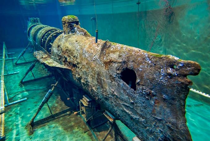 Το «Hunley» εκτίθεται πλέον- δίχως να κινδυνεύει να βυθιστεί και πάλι- στο Warren Lasch Conservation Center στο Τσάρλεστον