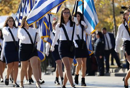 Πλήθος κόσμου συγκεντρώθηκε στους δρόμους του κέντρου της Αθήνας, για να παρακολουθήσει τη μαθητική παρέλαση για την επέτειο της 28ης Οκτωβρίου