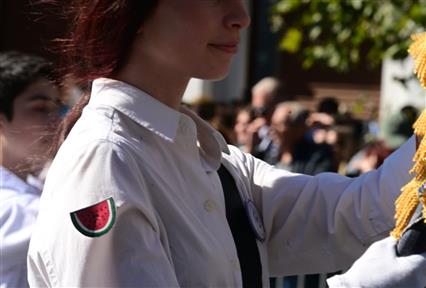 Σε μια συμβολική κίνηση προχώρησαν μαθήτριες κατά τη διάρκεια της παρέλασης
