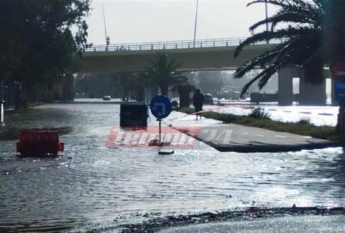 Η παραλιακή ζώνη του Ρίου πλημμυρισμένη από την έντονη βροχόπτωση και τους σφοδρούς ανέμους