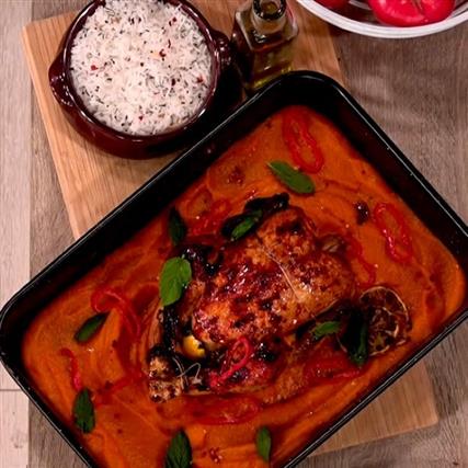 Ψήνεται στη γάστρα, παρέα με γλυκοπατάτα, καρότο και κόκκινη πιπεριά, και γίνεται φοβερά τρυφερό