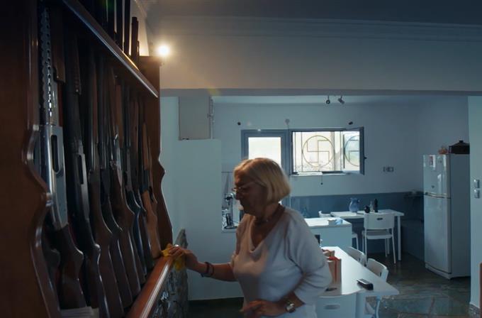 Πλάνο του πολυσυζητημένου ντοκιμαντέρ Golden Dawn Girls δείχνει τη μητέρα του Παναγιώτη Ηλιόπουλου να καθαρίζει ένα οπλοστάσιο μέσα στο σπίτι της