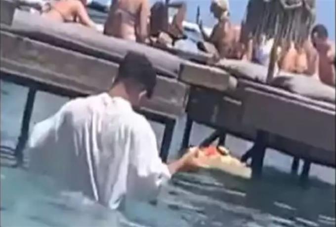 Ο ιδιοκτήτης επιχειρώντας να διασκεδάσει τις εντυπώσεις, υποστήριξε ότι ο σερβιτόρος πήρε την πρωτοβουλία να μεταφέρει την παραγγελία στις πλωτές ξαπλώστρες και μάλιστα τα έβαλε και με το ύψος του