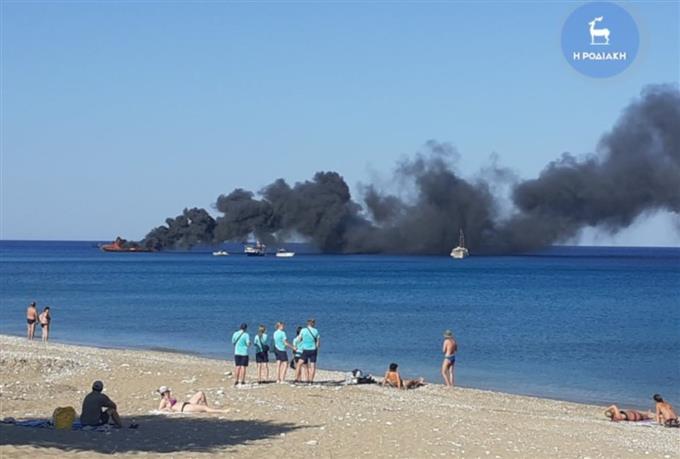 Ρόδος: Σοκάρουν οι εικόνες από τη φωτιά και την ολοκληρωτική καταστροφή του ημερόπλοιου - Η στιγμή που τυλίγεται στις φλόγες